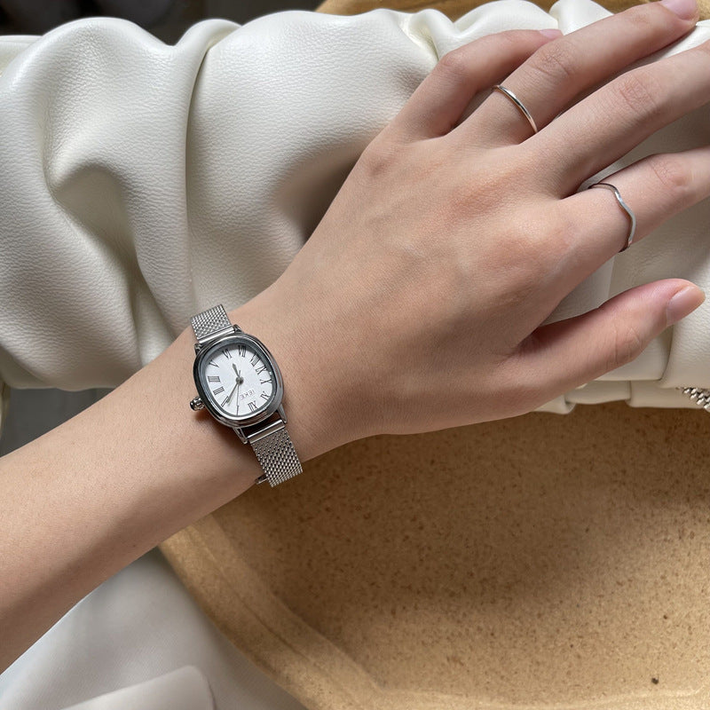 Vintage Oval Slim Strap Roman Numeral Gold Watch