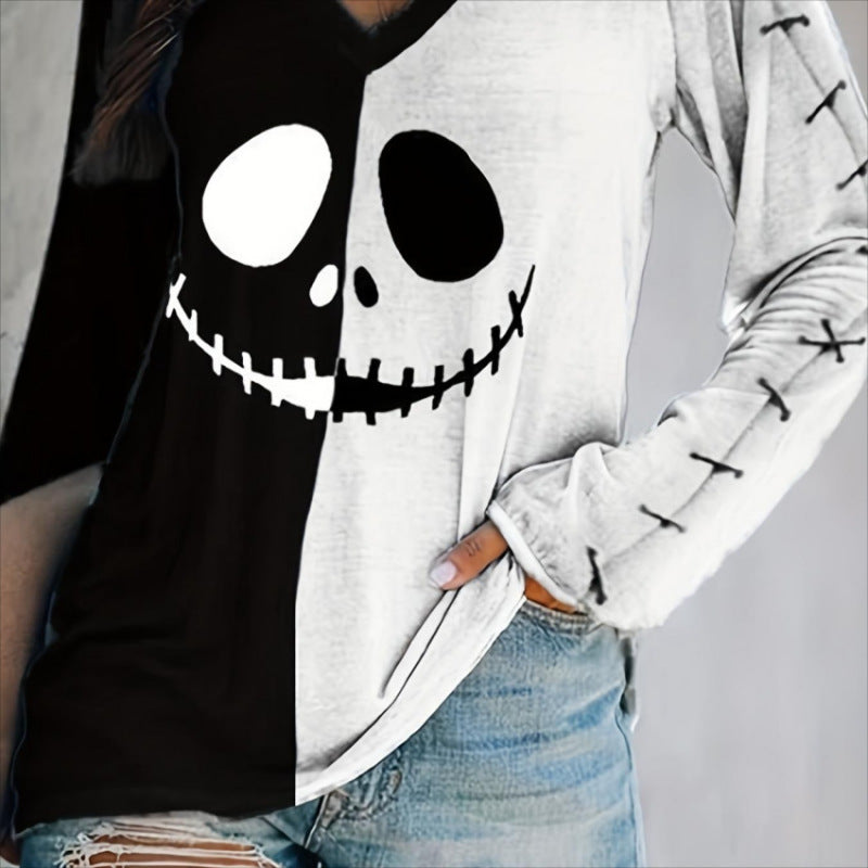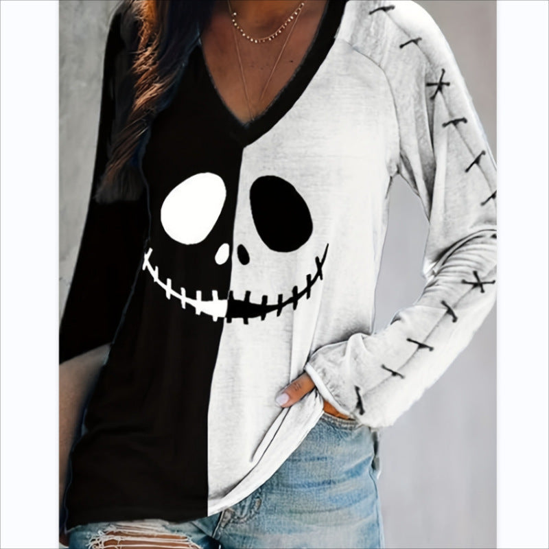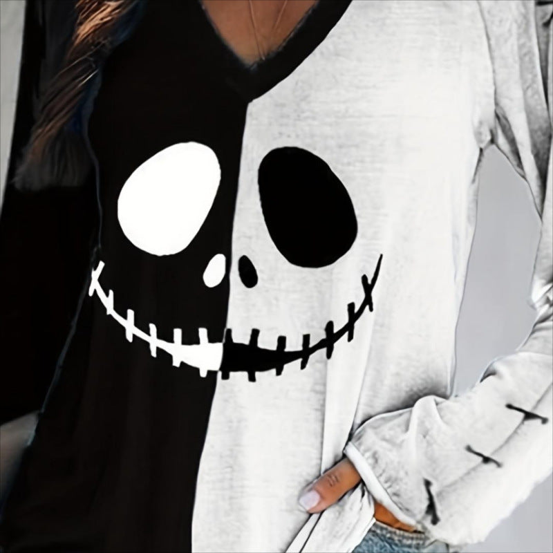 T-shirt décontracté pour femme avec imprimé tête de mort pour Halloween