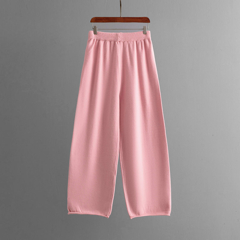 Ensemble pull tricoté décontracté de couleur unie et pantalon large pour femme