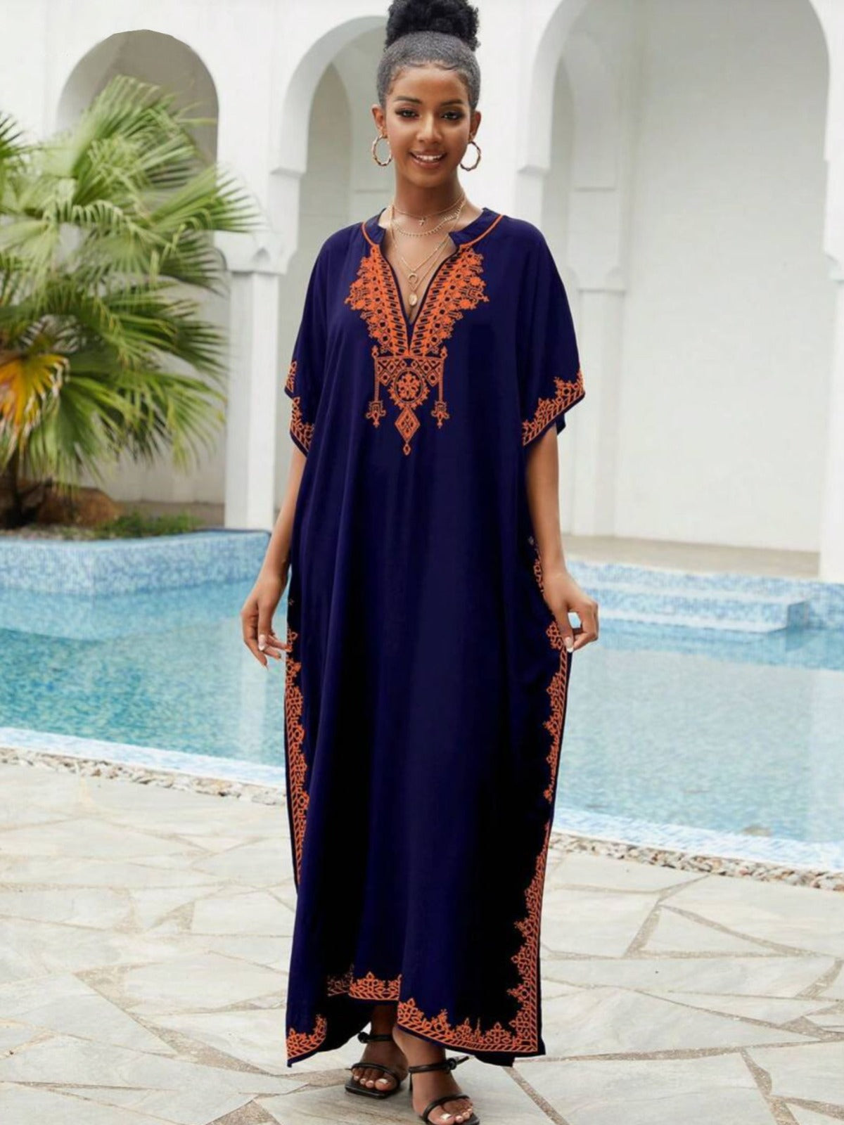 Sublimez votre style plage avec notre paréo de plage bohème décontracté et tendance pour femme, brodé, col en V, manches courtes et protection solaire. Conçu pour la femme moderne, ce paréo polyvalent allie confort et élégance, idéal pour les sorties estivales et les journées à la piscine.
