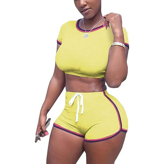 Rehaussez votre garde-robe décontractée avec notre ensemble deux pièces tendance pour femme, composé d'un t-shirt à manches courtes et d'un short à cordon de serrage. Cet ensemble élégant et confortable est parfait au quotidien, avec un design tendance alliant style et fonctionnalité.