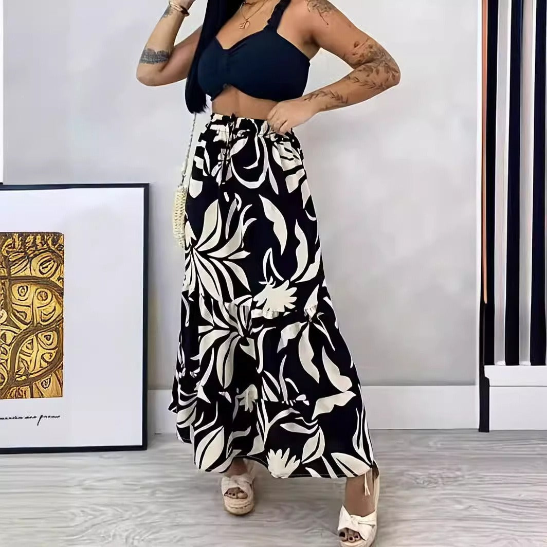 Cette jupe taille haute décontractée à imprimé floral allie confort et style grâce à son tissu en polyester respirant et ses motifs vibrants. Sa longueur midi et sa coupe trapèze ample créent un look frais et élégant, idéal pour toutes les occasions.