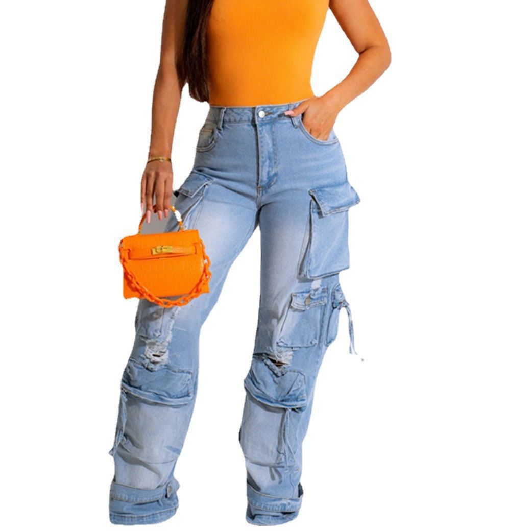 Ce jean taille haute décontracté est confectionné en denim résistant, avec du coton et du polyester. Il est doté de multiples poches pour plus de fonctionnalité et de style. Sa coupe droite rétro offre une coupe confortable et un look intemporel, idéal au quotidien.
