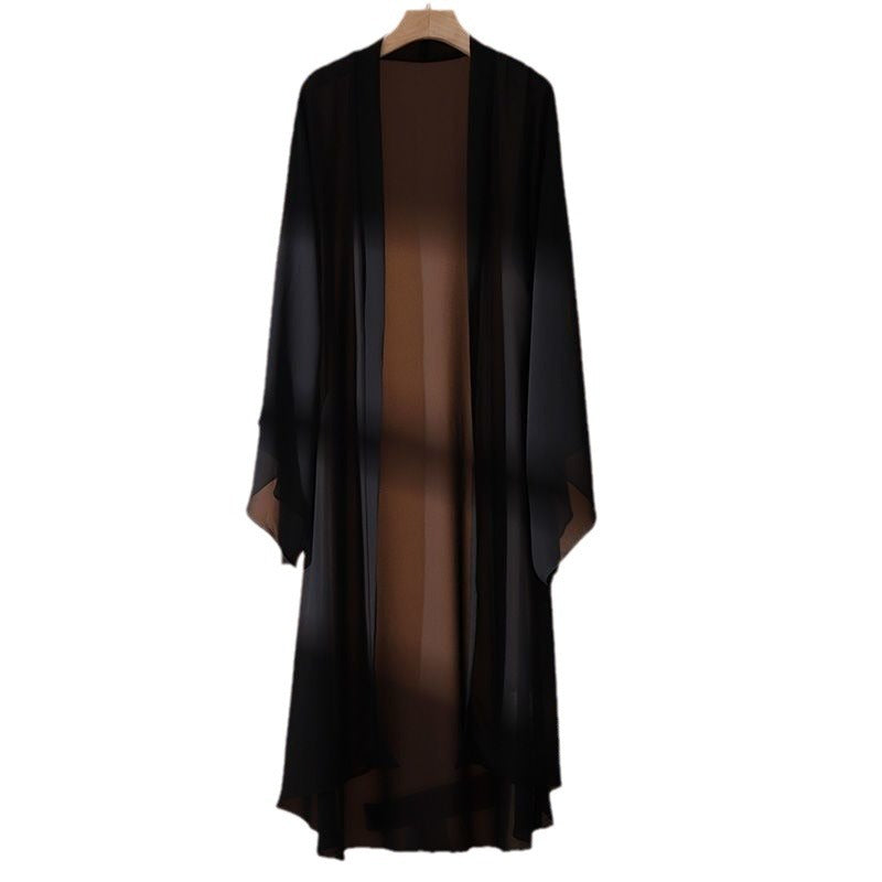 Manteau décontracté à manches longues en mousseline de soie de couleur unie pour femme