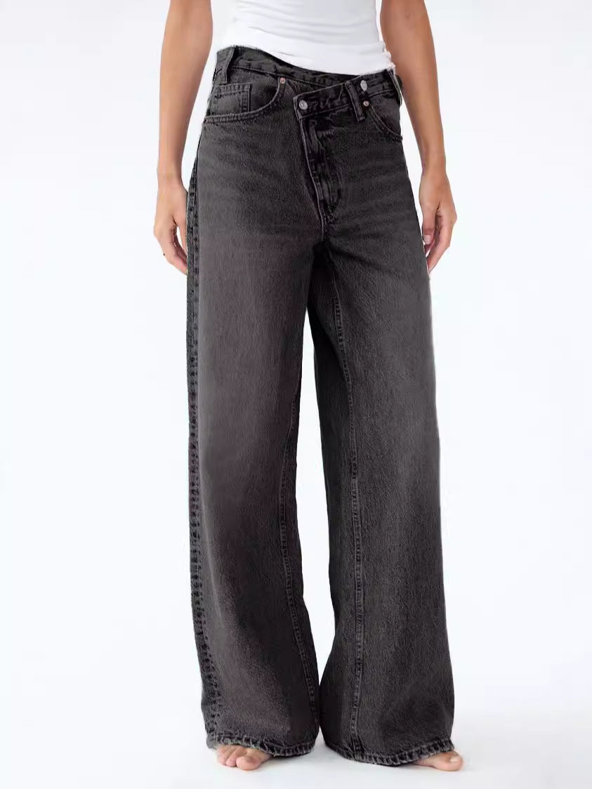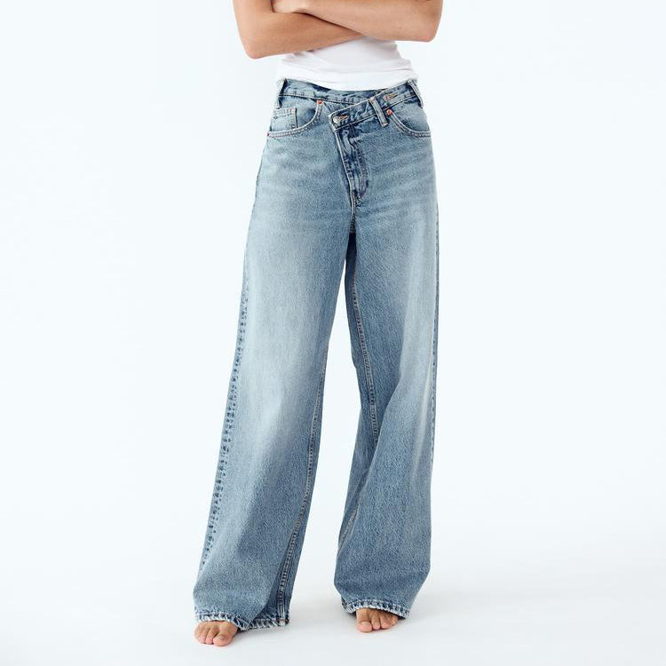 These casual straight jeans are made from durable denim cotton, offering a comfortable fit with a high waist and micro-type design. Available in versatile colors, they are suitable for everyday wear and various casual occasions.
