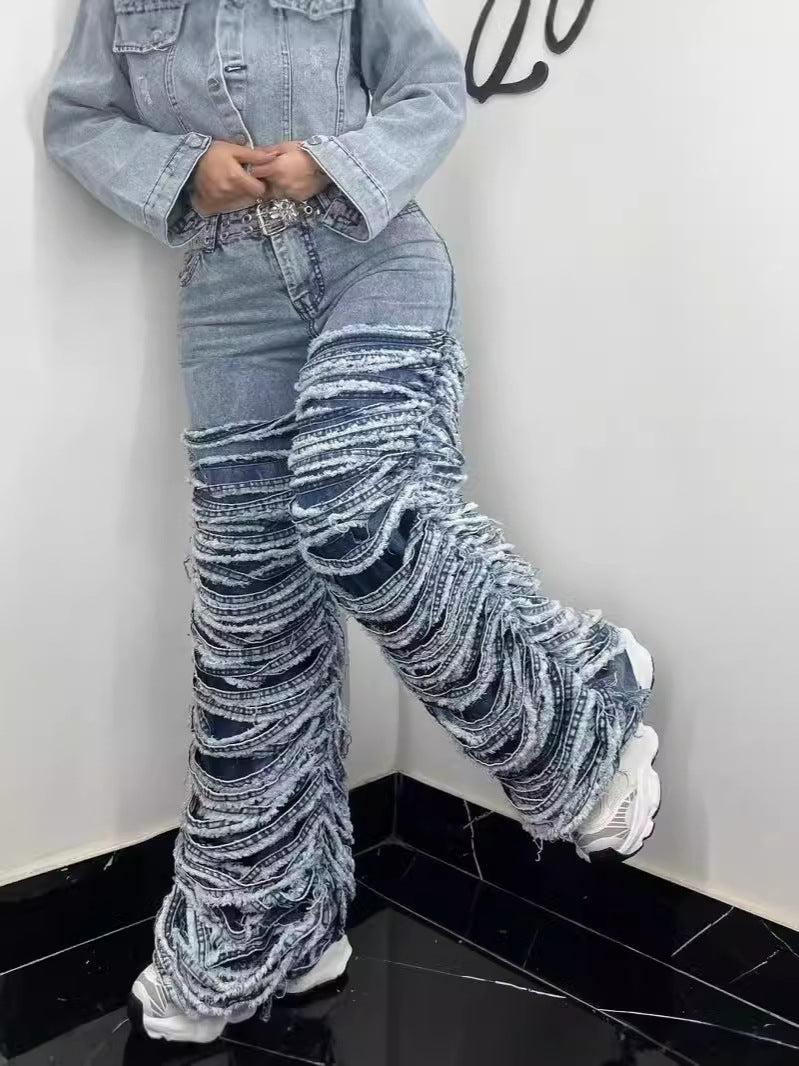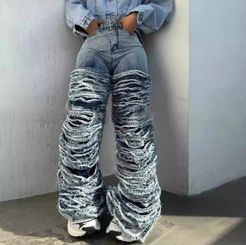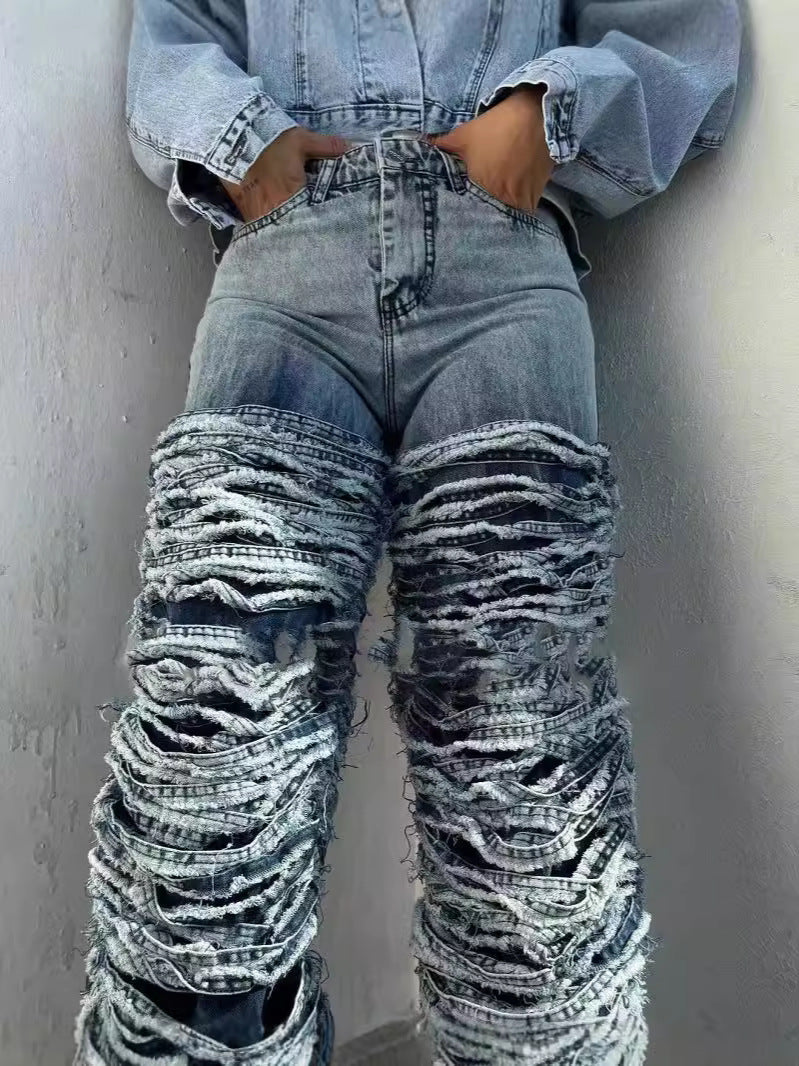 - Style : Pantalon droit avec un bord déchiré à la mode
