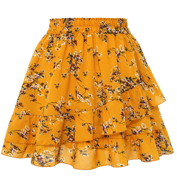 Jupe à volants élégante à imprimé floral irrégulier pour femmes