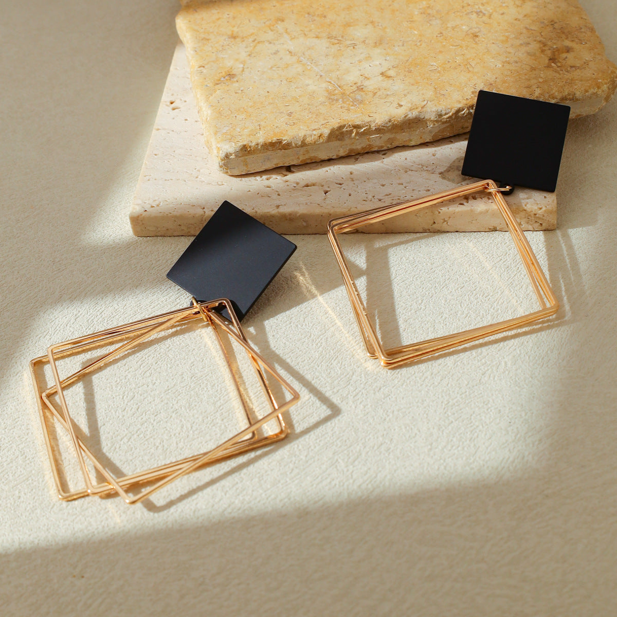 These fashion-forward square earrings are crafted from durable metal with an exaggerated geometric design, perfect for adding a modern touch to everyday or casual outfits. They are lightweight, stylish, and versatile for various fashion styles and occasions.