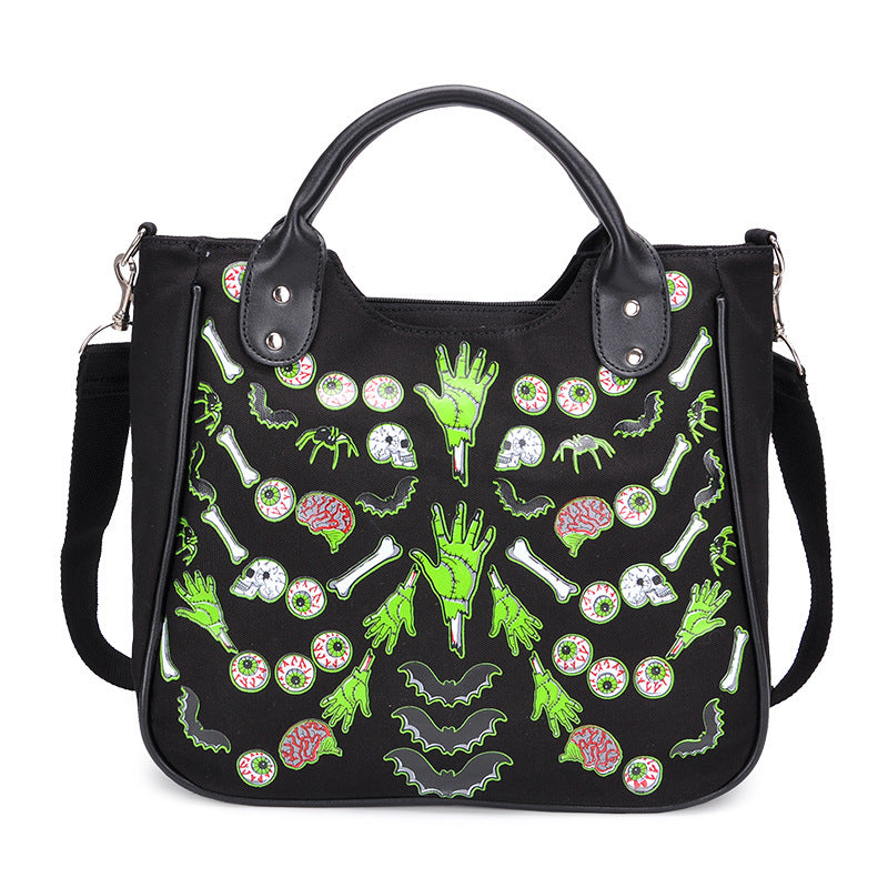 Sac fourre-tout en toile à imprimé tête de mort personnalisé pour femme, mode Halloween