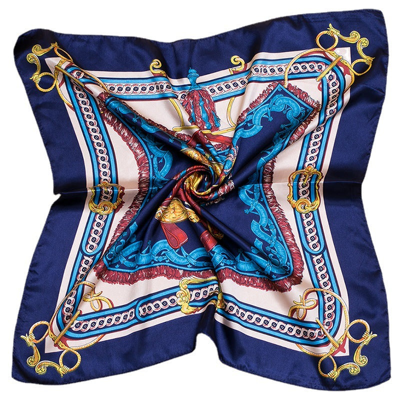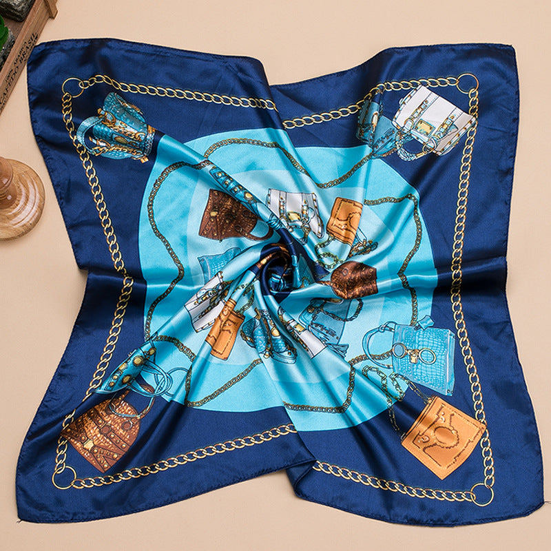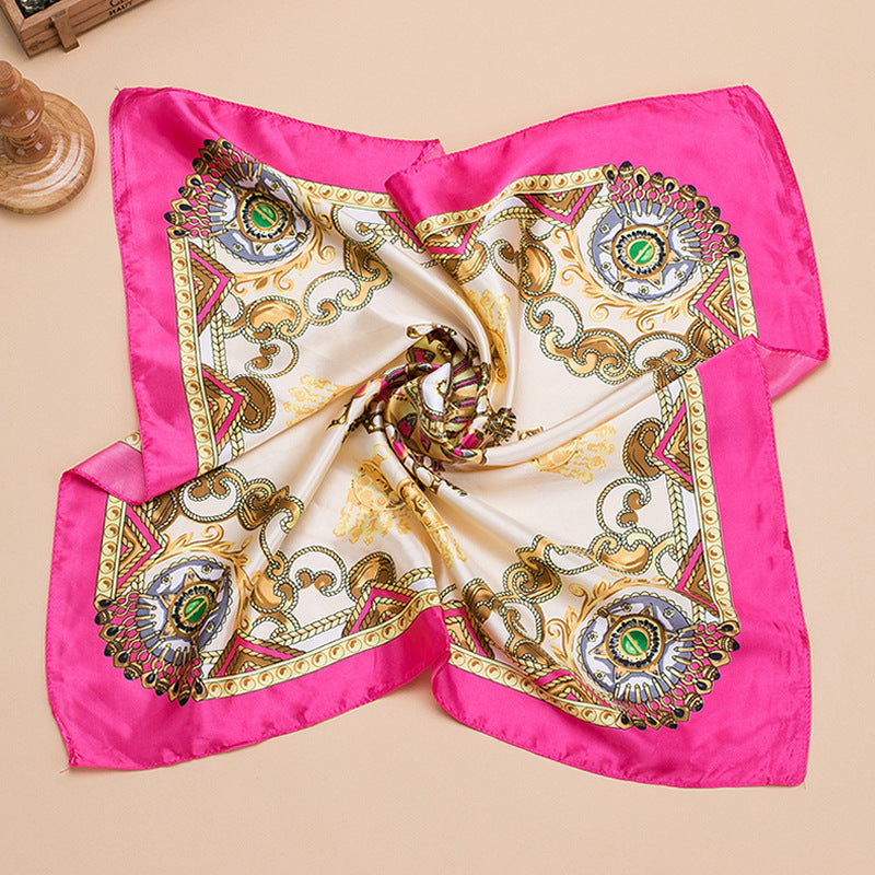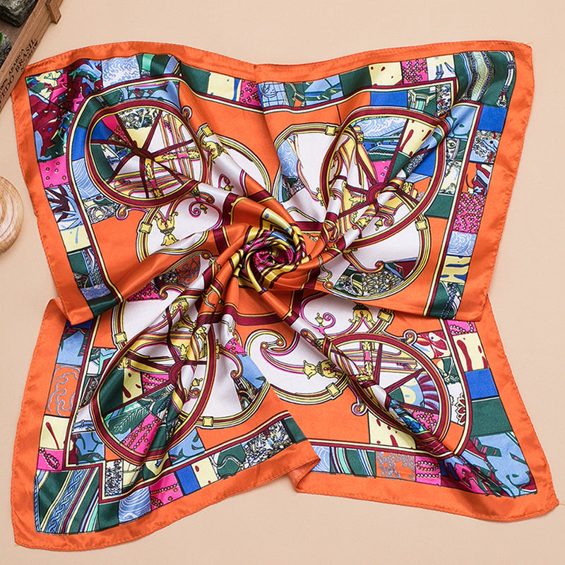 Grand foulard carré en satin imprimé mode femme, joli motif floral