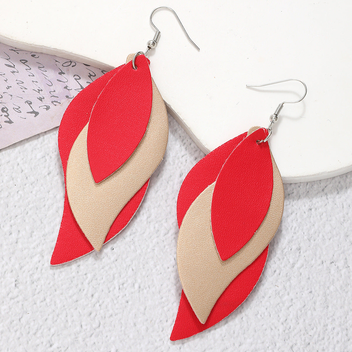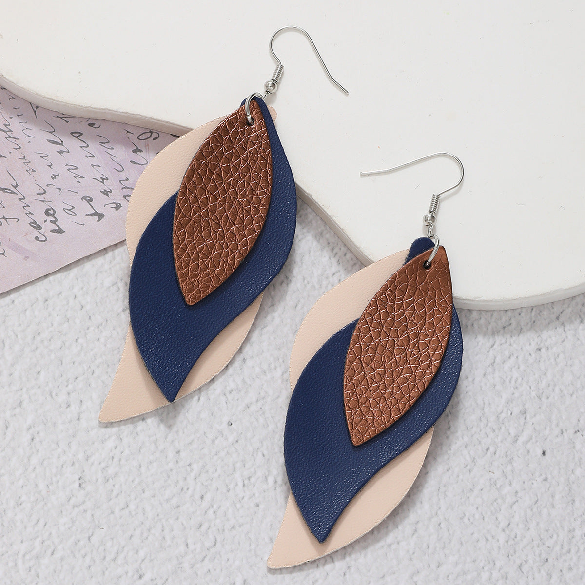 These fashionable earrings feature a triple leaf design crafted from high-quality PU leather, offering a unique geometric and personality style. Perfect for adding a trendy touch to everyday or special occasion outfits, they come in multiple vibrant colors for versatile styling options.
