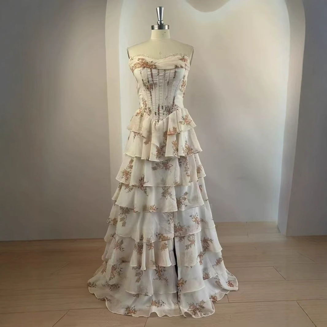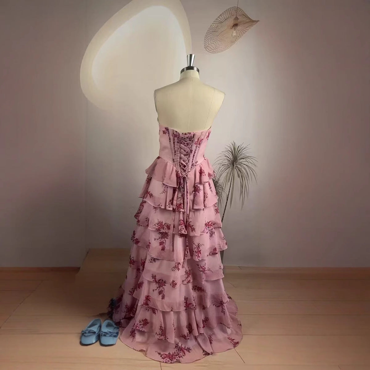 Adoptez l'élégance et le style avec notre robe bustier dos nu à volants, élégante et sexy, à imprimé floral. Confectionnée en polyester doux, cette superbe robe présente un design bustier et une taille haute pour une silhouette flatteuse. Idéale pour de nombreuses occasions, elle vous apportera assurance et élégance.