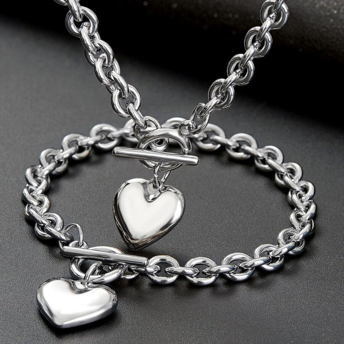 Ensemble collier et bracelet simple en forme de cœur pour femme