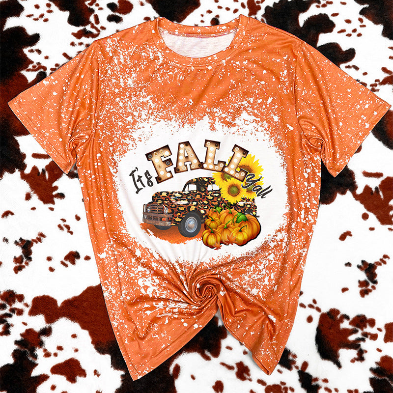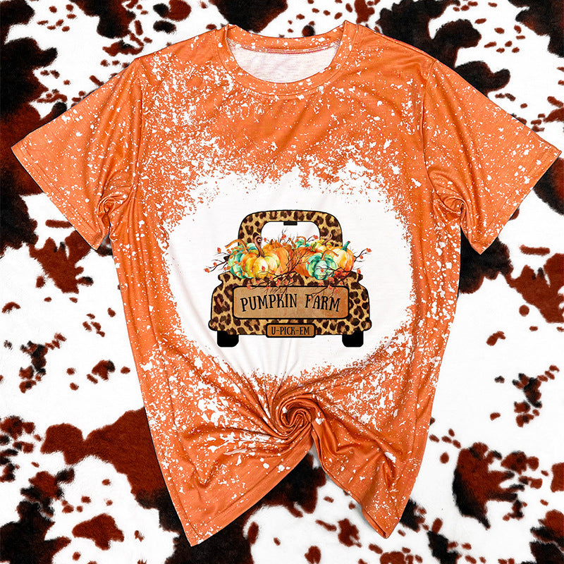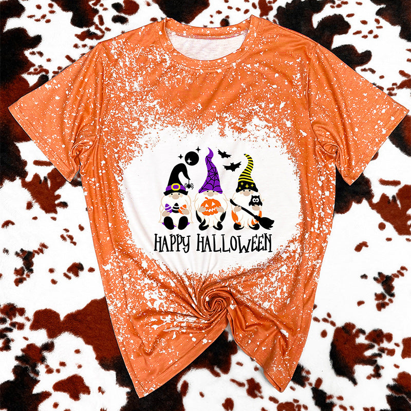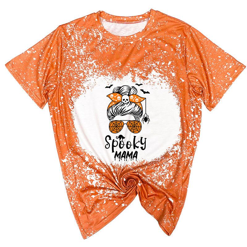 T-shirt à manches courtes imprimé orange Halloween pour femme