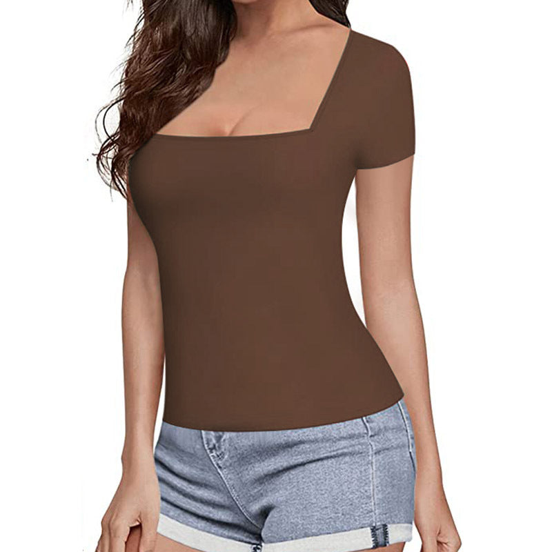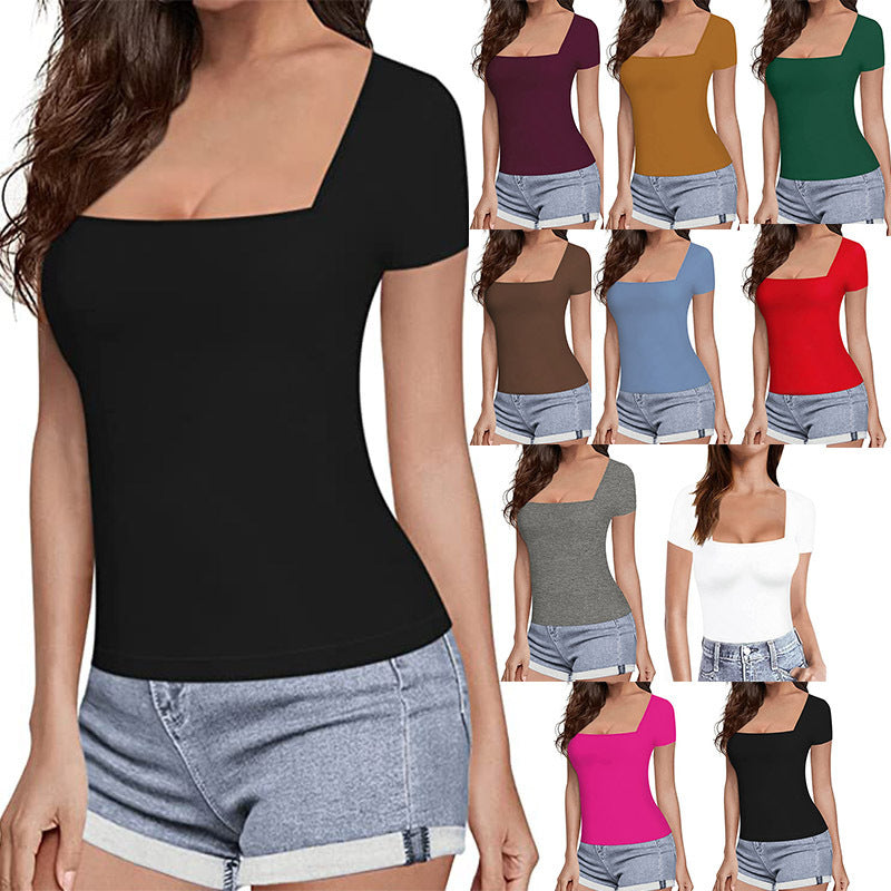 Ce t-shirt uni décolleté et sexy pour femme, à col carré et à coupe basse, allie style et confort. Fabriqué en polyester doux, il offre un drapé élégant et est disponible dans une variété de couleurs. Passez facilement du jour au soir avec ce t-shirt uni essentiel qui complète toutes vos tenues.