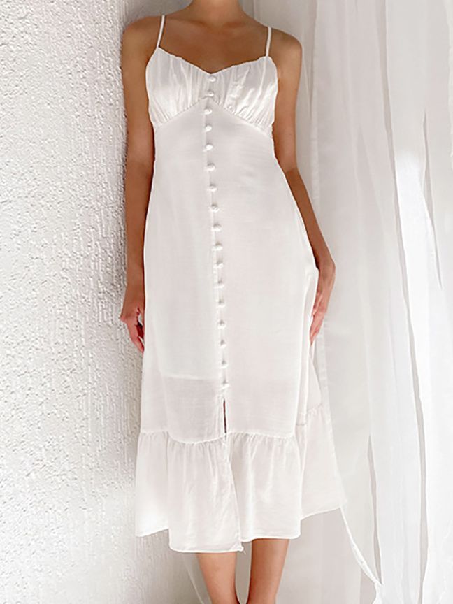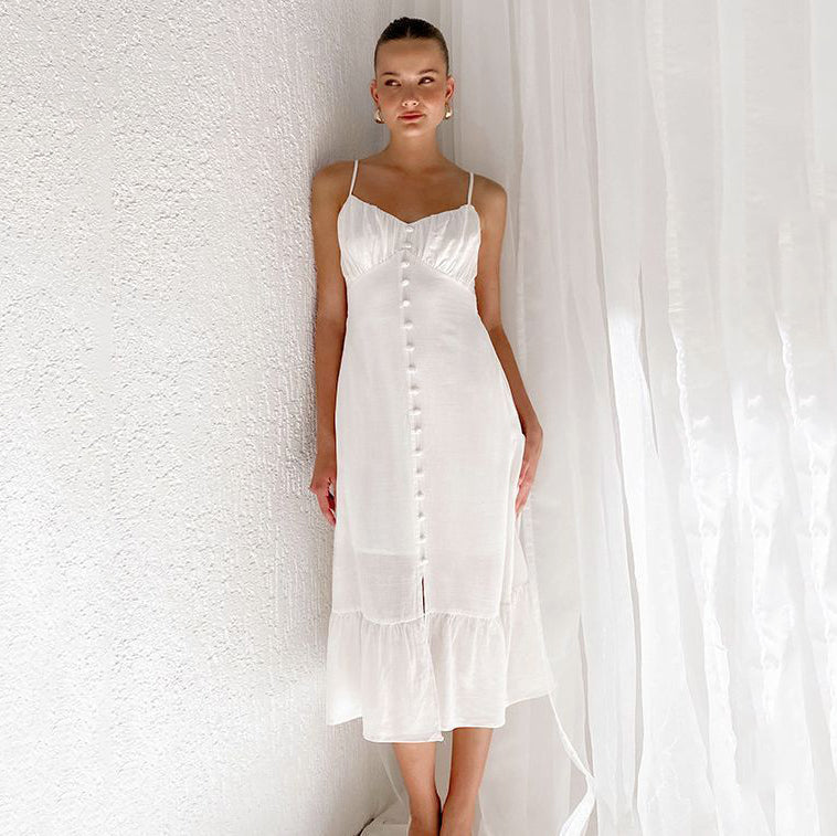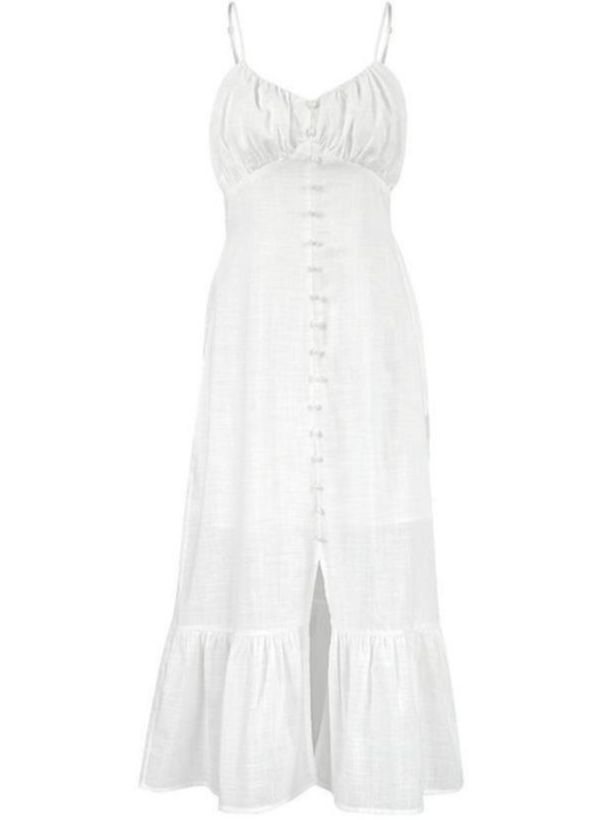 Robe sexy à bretelles spaghetti fendues en coton et lin pour femme