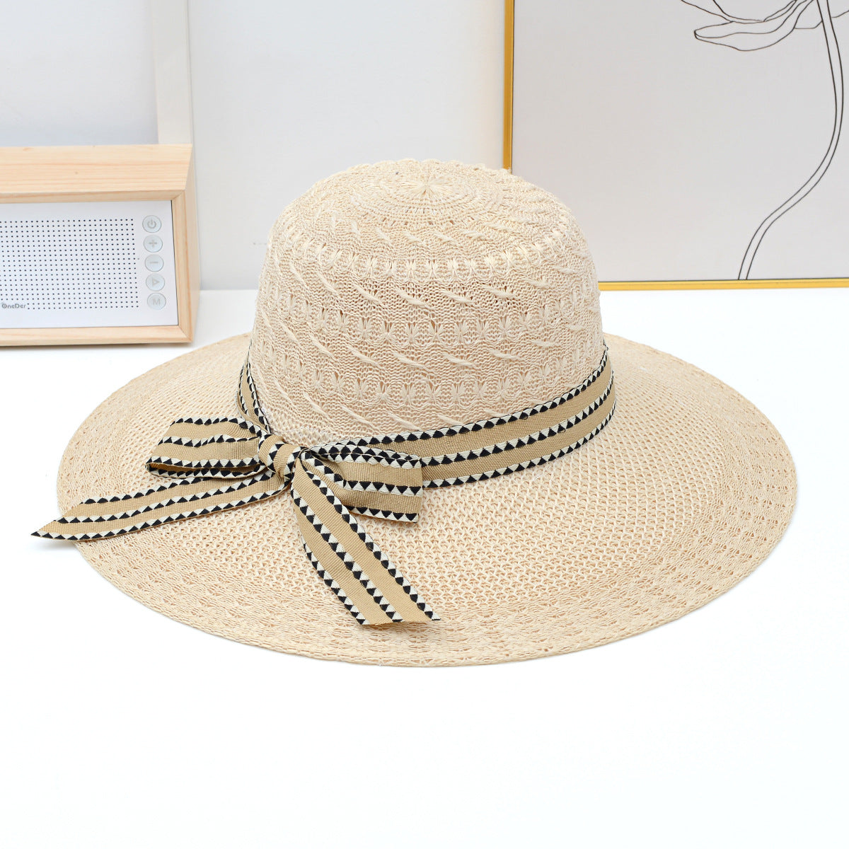 Chapeau de soleil tissé pour femme - Beige, cuir rouge, café clair, orange