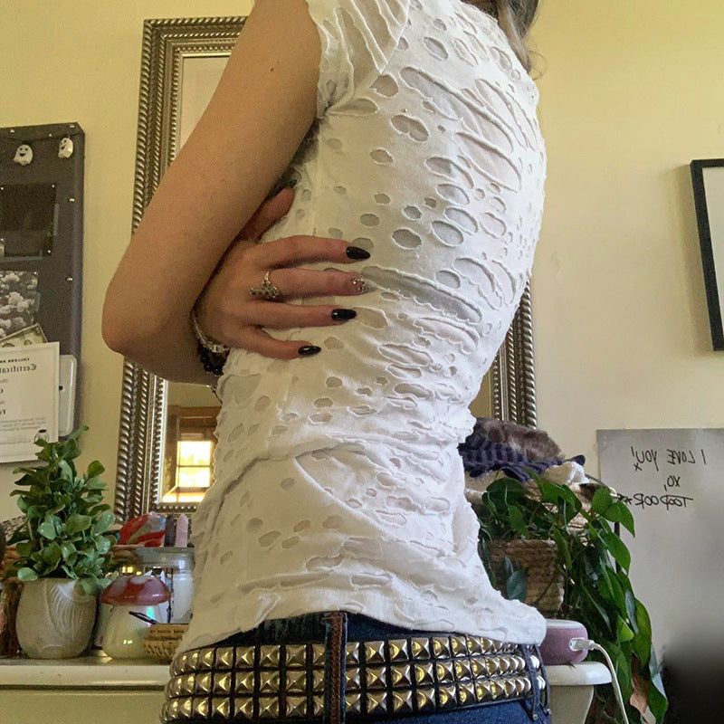 Y2K Women Fashion Ripped Short Sleeve T-Shirt
