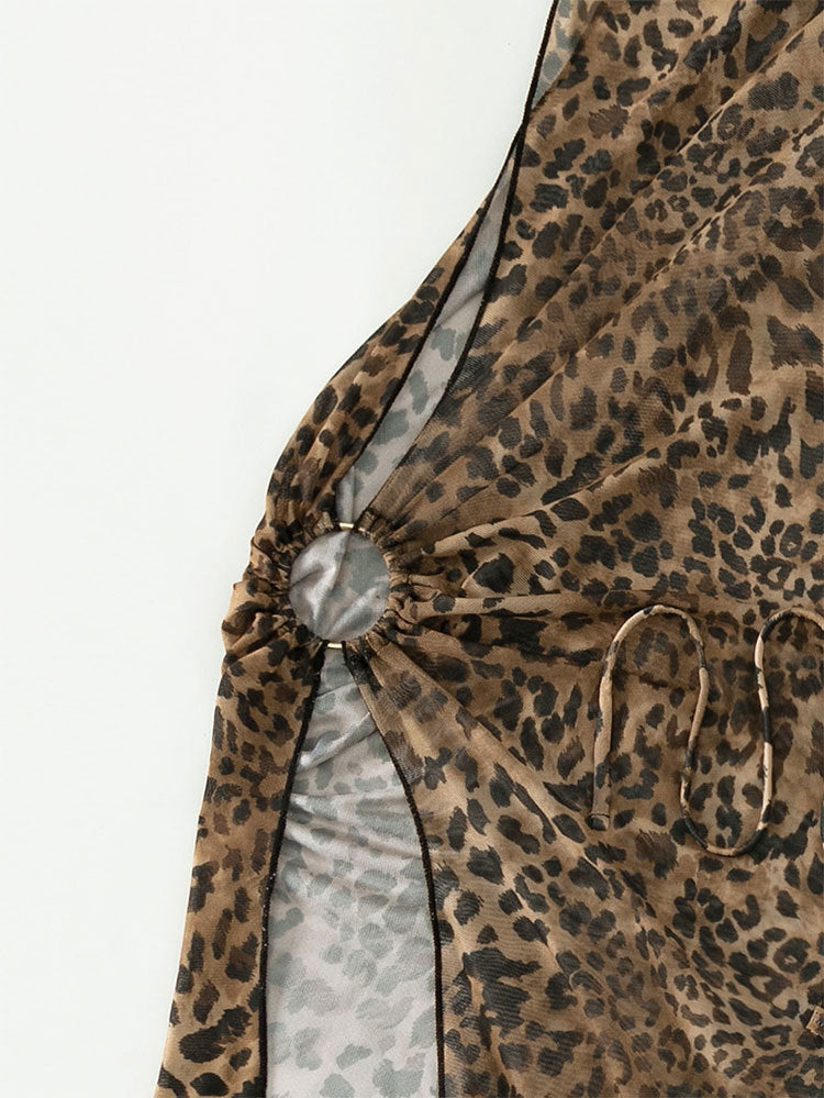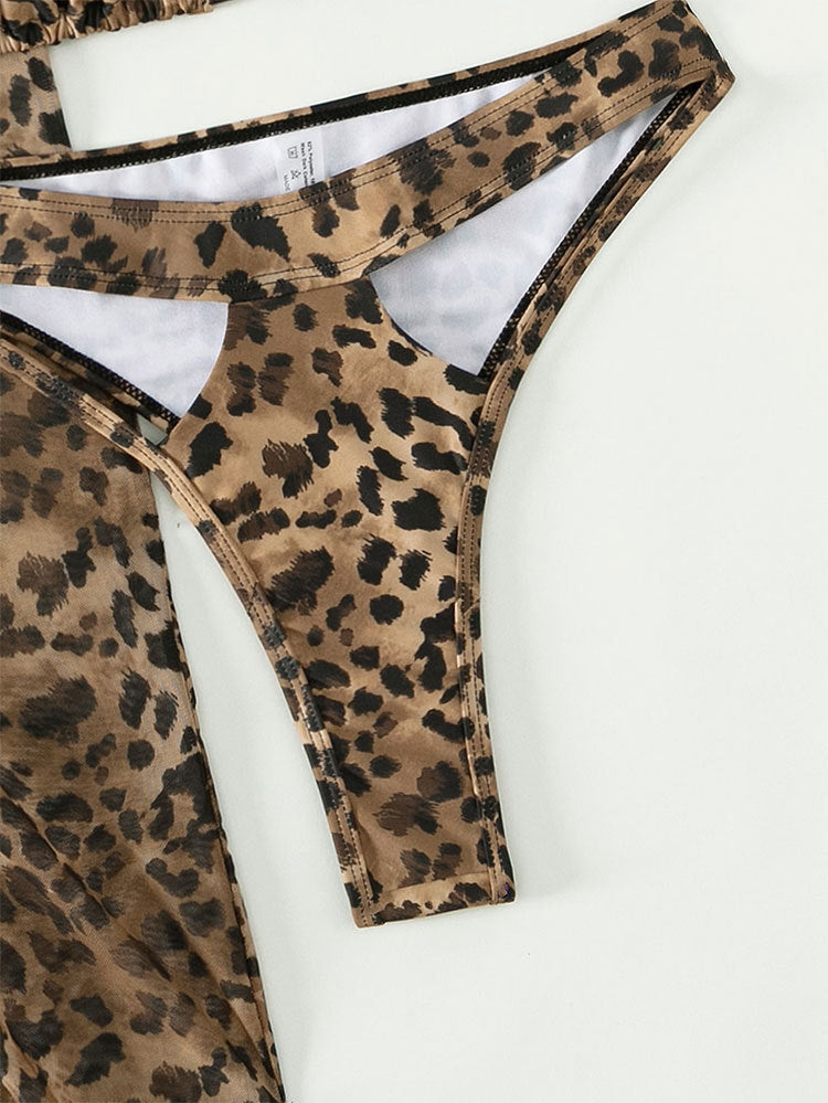 3PCS Sexy Print Halter Mesh Bikini Swimwear