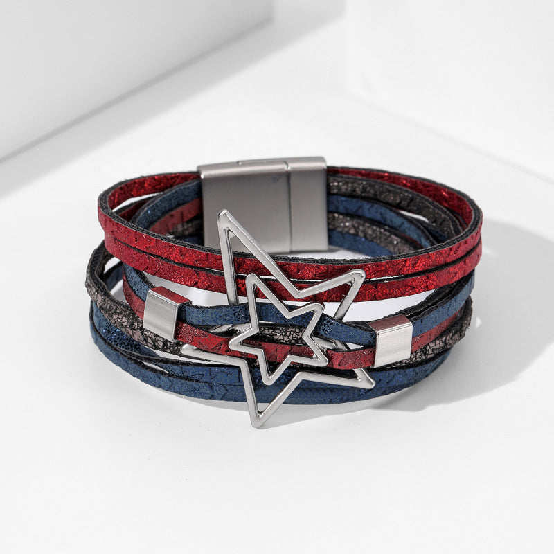 Discover the perfect touch for your outfit with our Women Fashion Bohemian Star Multi-Layer Leather Alloy Magnetic Buckle Bracelet. This stunning accessory combines exquisite design and versatility, making it a must-have in any jewelry collection, especially for lovers of boho aesthetics.