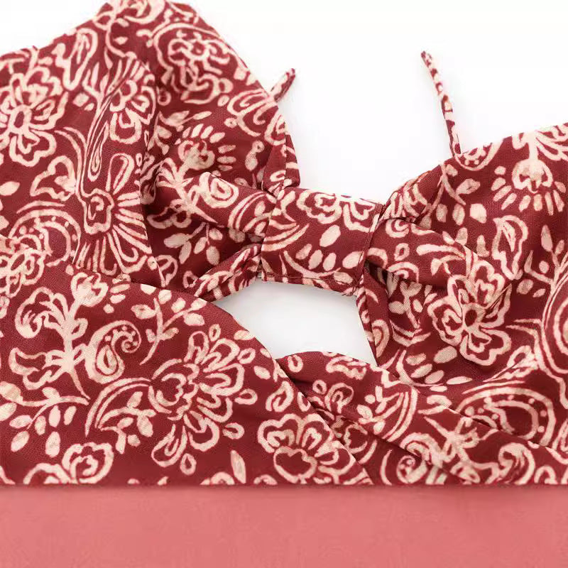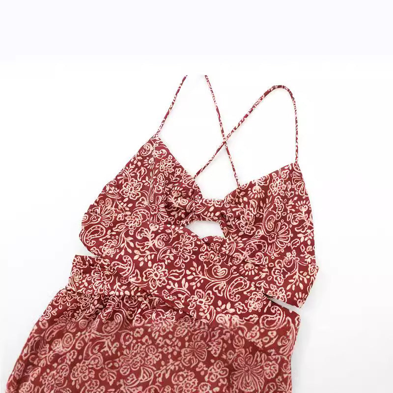 Casual Floral Print Sleeveless Cut Out Midi Dress