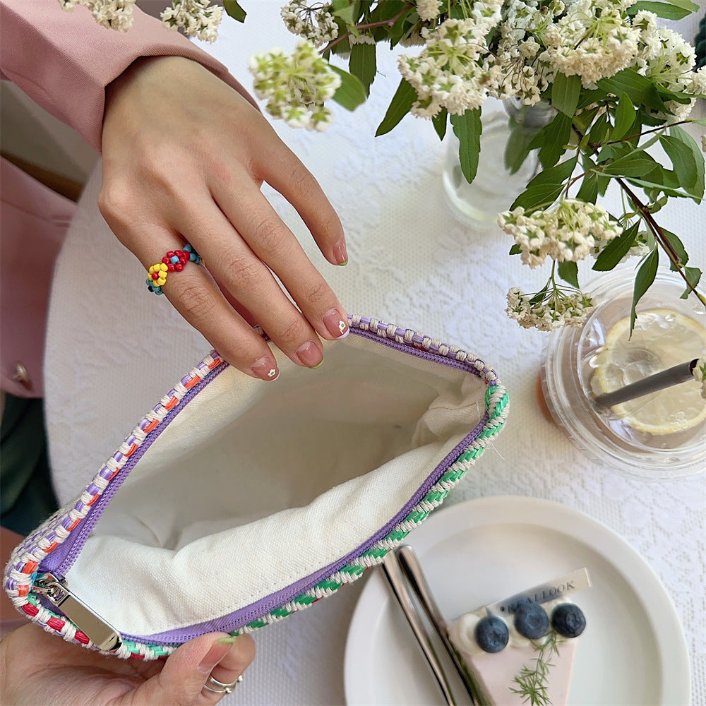 Color Block Striped Large Capacity Make Up Bag