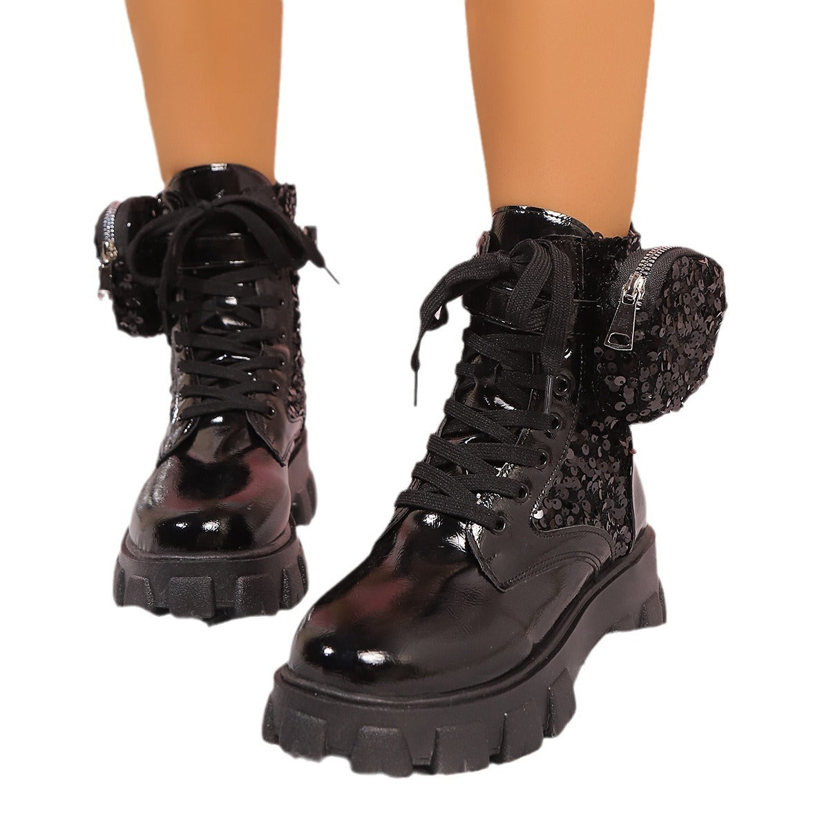 This pair of fashionable sequin boots features vibrant stitching and a stylish design, perfect for making a statement. Crafted from high-quality PU material, these ankle-length boots provide comfort and durability, suitable for various casual and festive occasions.