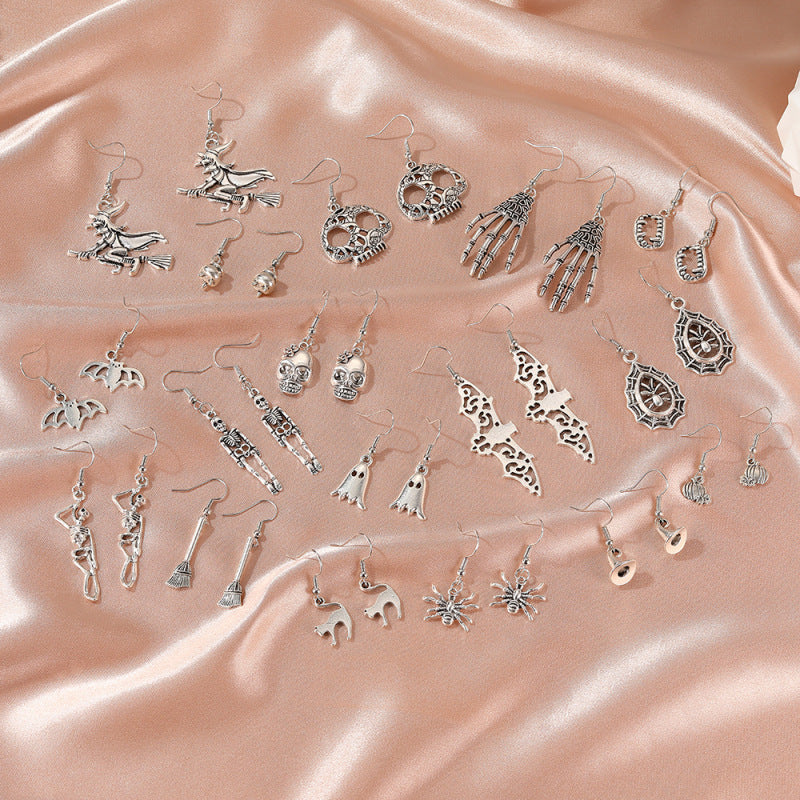 Halloween Skeleton Bat Spider Earrings Alloy Retro Style