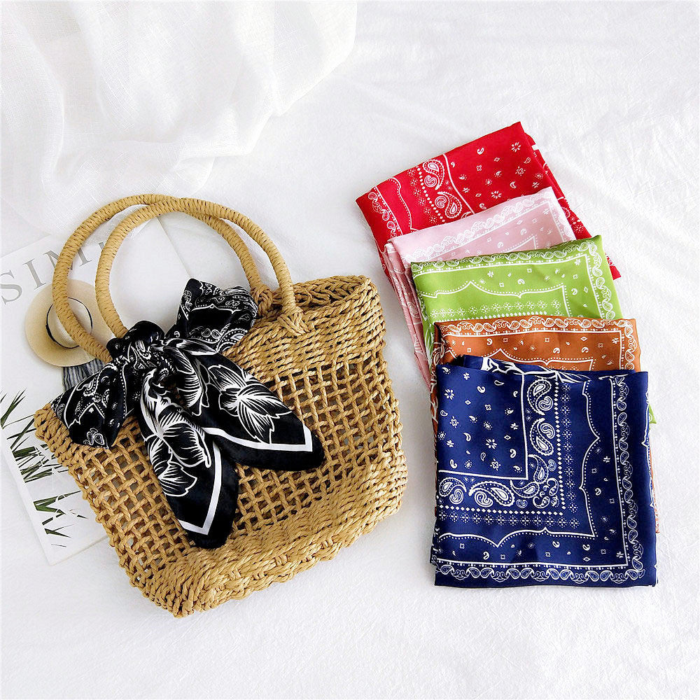 Fashion Printed Square Ribbon Tie Bag Handle Scarf