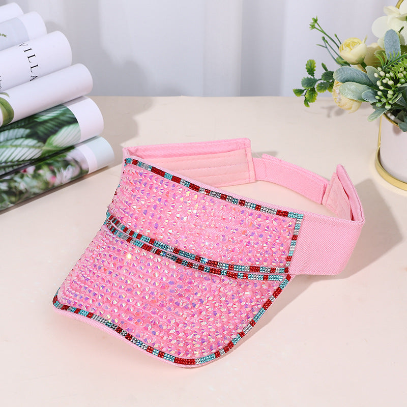 Fashion Women Rhinestone Hollow Sunscreen Cap