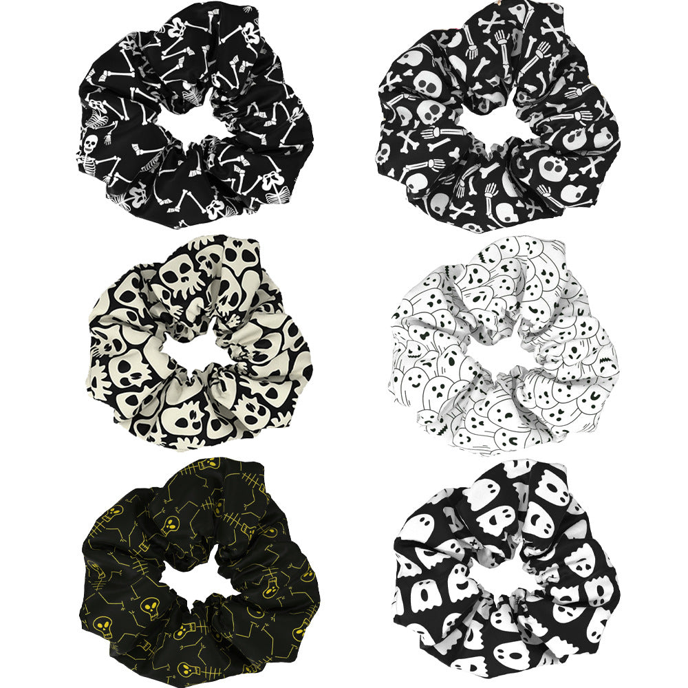 This Halloween-themed hair ring features a distinctive skull design with black and white colors, crafted from high-elasticity cloth material. Its natural style and vibrant color options make it a versatile accessory for festive or everyday wear, combining comfort with eye-catching appeal.