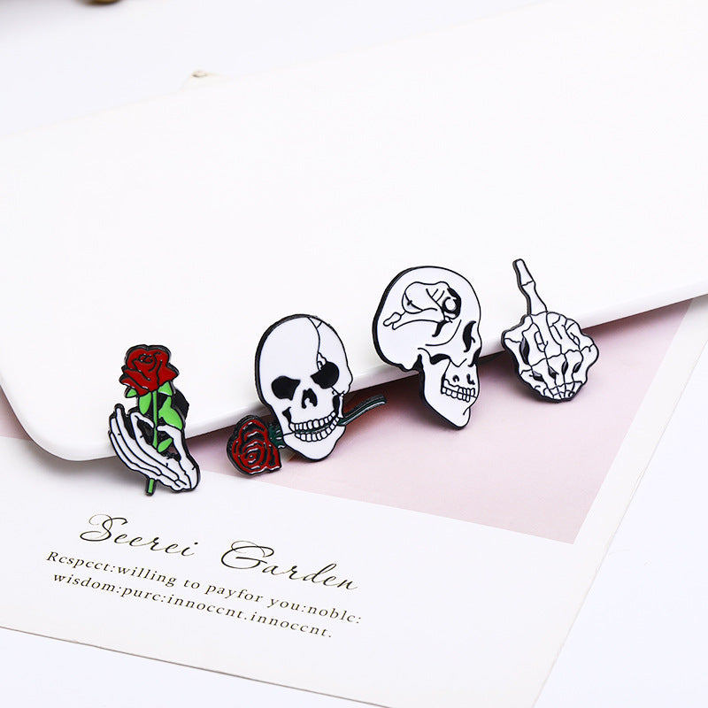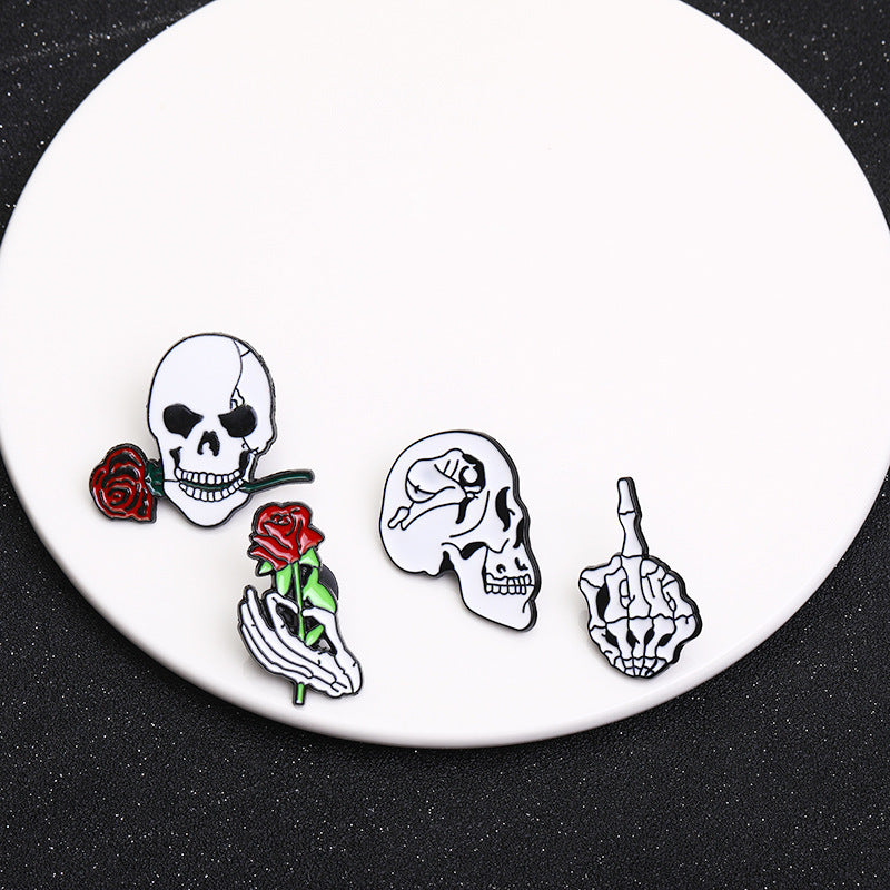 This halloween unisex brooch features a cartoon-style skeleton design crafted from durable alloy, available in multiple colors. Its unique drip oil effect adds a bold and eye-catching element, making it a versatile accessory for various outfits and occasions.