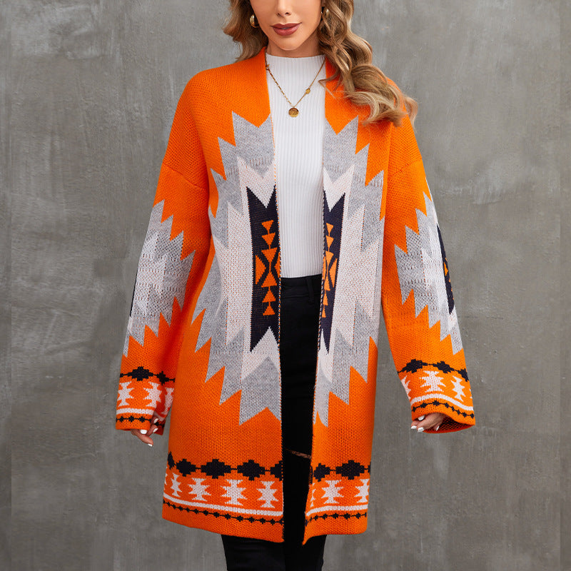 Halloween Women Fashion Geometric Jacquard Sweater Coat