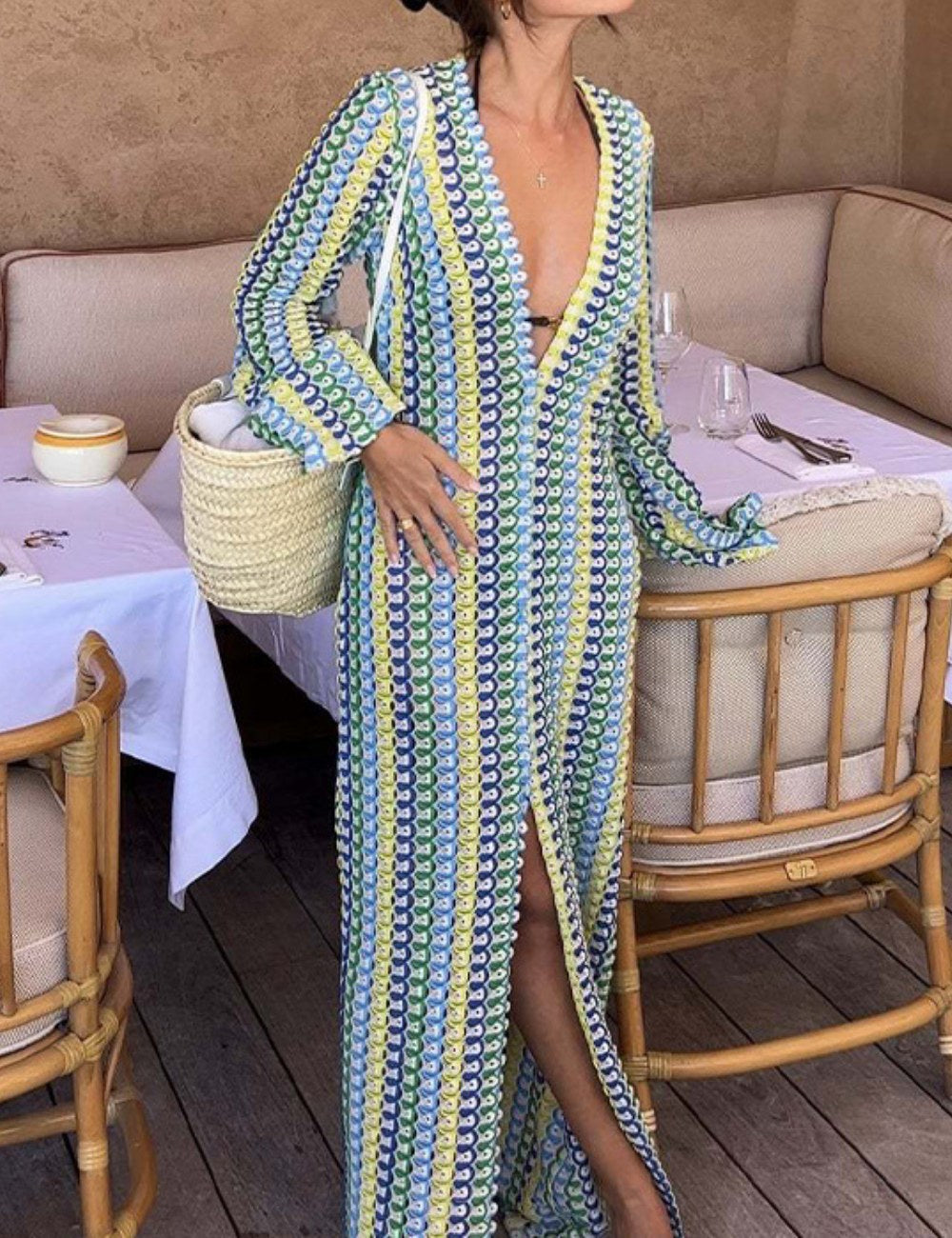 Hollow Out V-Neck Split Slim Sexy Cover Up