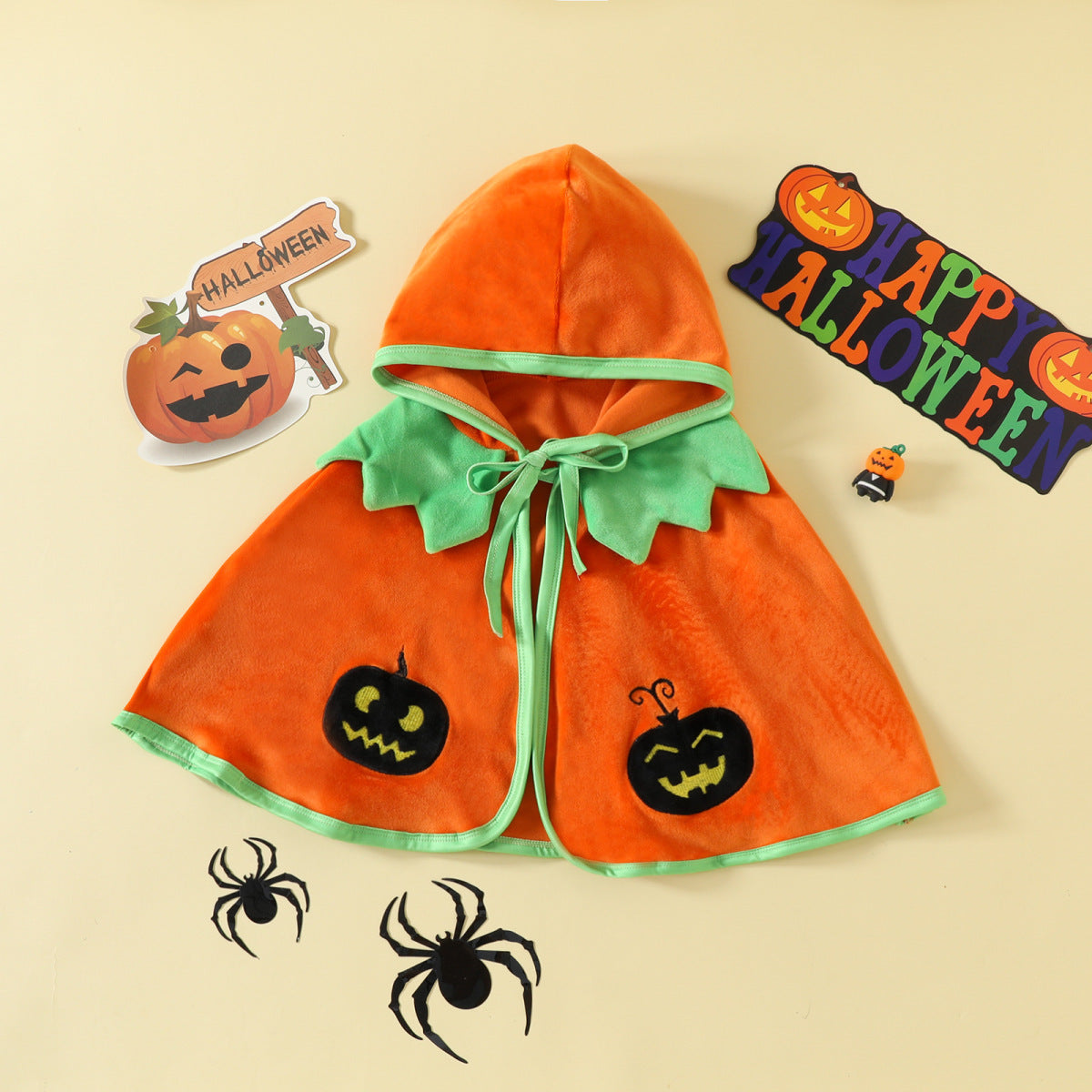 Featuring a playful pumpkin pattern, the cape comes in vibrant orange and classic white colors. The hood adds extra cuteness and warmth, making it suitable for Halloween celebrations or seasonal events.