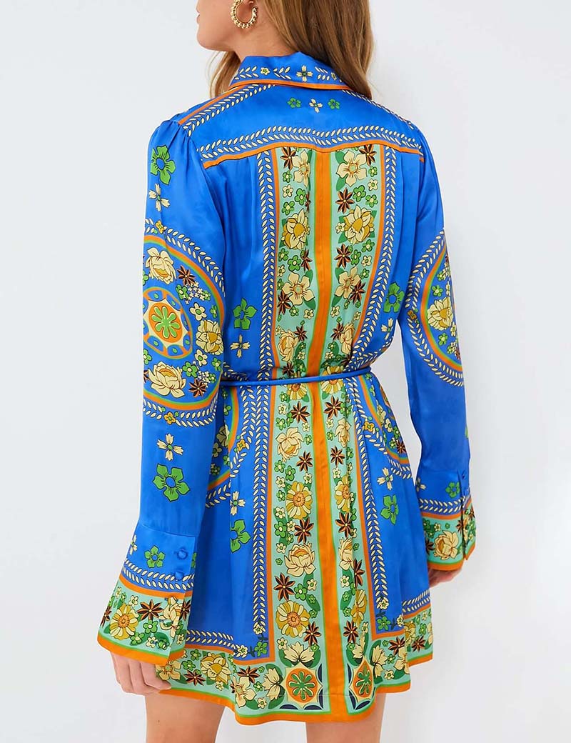 Lapel Floral Buttons Belt MIni Dresses