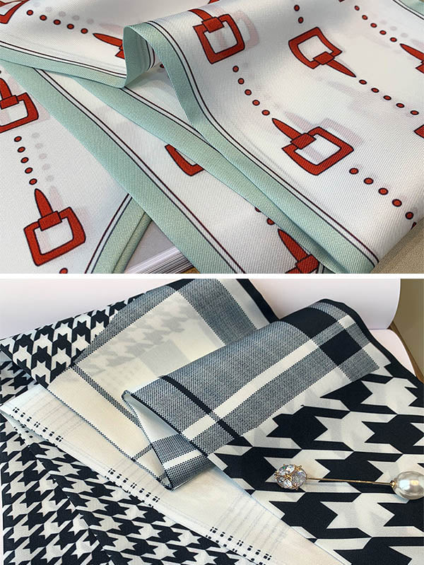 Original Striped&Plaid Print Hair Band&Silk Scarf