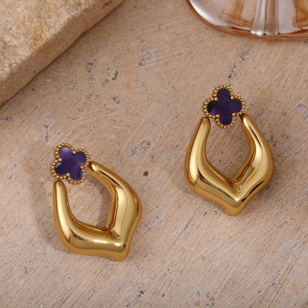SummaryThese personalized four-leaf clover studs in stainless steel combine elegant floral design with trendy colors, offering durable, comfortable, and stylish accessories for everyday fashion. Perfect for elevating your look or gifting to someone special.