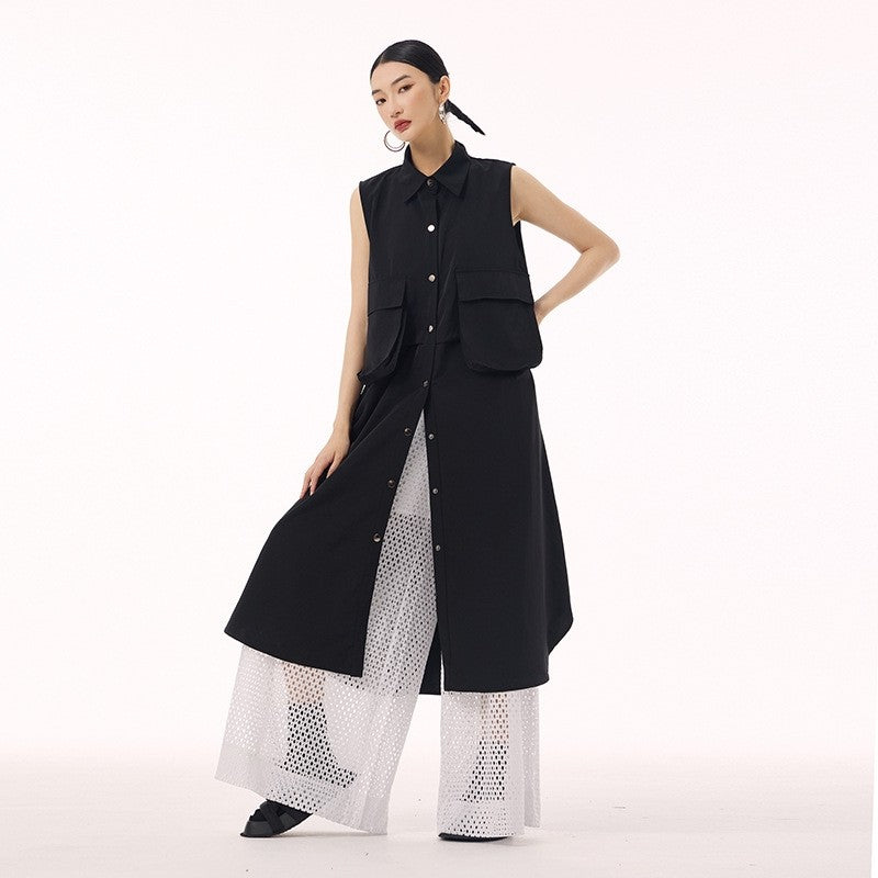 #Polo Collar Vest Dress,#Cotton Loose Dress,#Normcore H-line Dress,#Large Pocket Maxi Dress,#Sleeveless Casual Dress,#Summer Leisure Fashion,#Stylish Statement Dress,#Original Paneled Dress,#Casual Going Out Dress,#Long Sleeveless Dresses