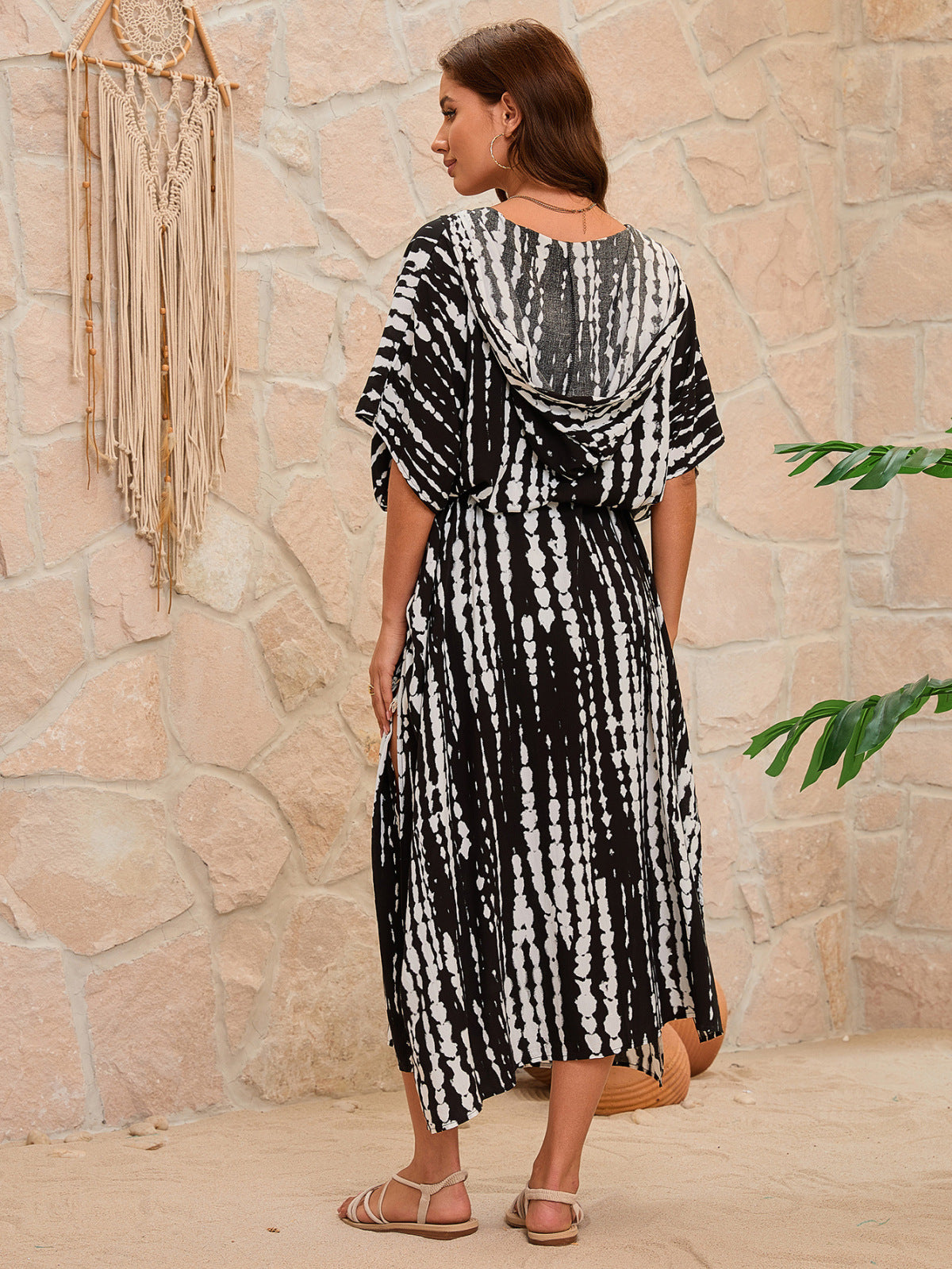 This versatile rayon tie-dyed cardigan is perfect for your vacation wardrobe. With its loose fit and hooded design, this coverup provides both style and sun protection. Made from 100% cotton blend fabric, it's soft and comfortable for all-day wear.