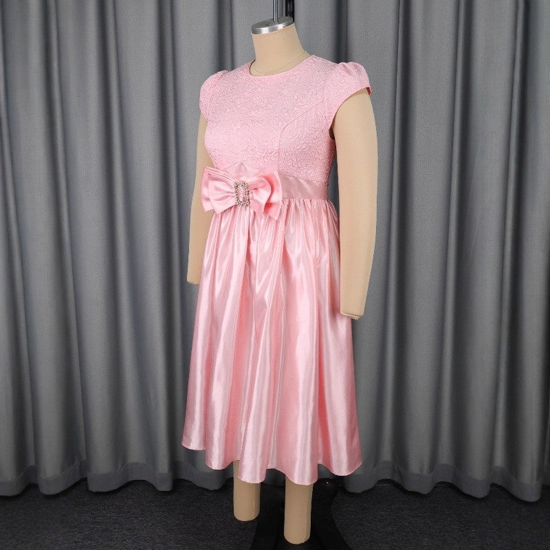 #rose jacquard dress, #cute jacquard dress, #beauty line evening dress, #bowknot summer dress, #round neck short sleeve dress, #casual jacquard dress, #polyester evening dress, #banquet summer dress, #short sleeve jacquard dress, #summer casual dresses