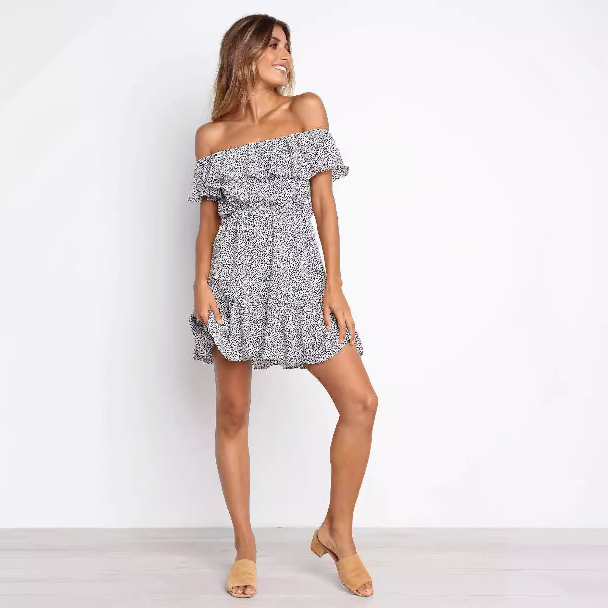Elevate your summer wardrobe with our Sexy Women Summer Vacation Off-Shoulder Ruffled Short Sleeve Dress. This stunning dress combines comfort and style, making it perfect for any summer occasion.