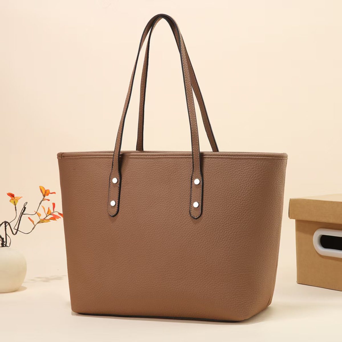 This large capacity tote bag features a solid color design crafted from soft PU material, offering a fashionable street trend style. Its generous size and practical features make it suitable for daily use and casual outings.