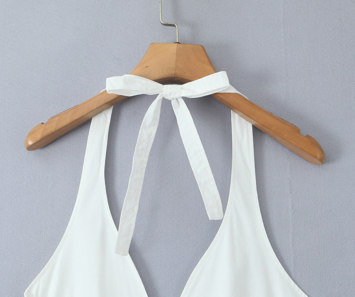 Solid Color Halter V-Neck Ruffle Maxi Dress
