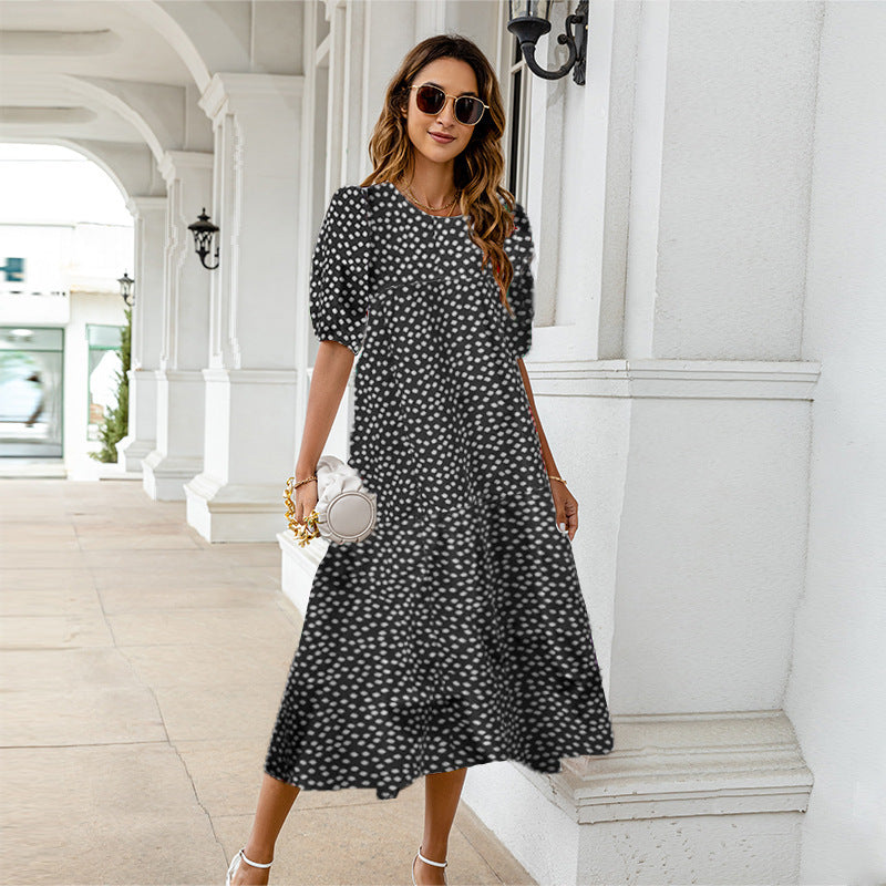 Summer Women Casual Bohemian Short Sleeve Polka Dot Dress