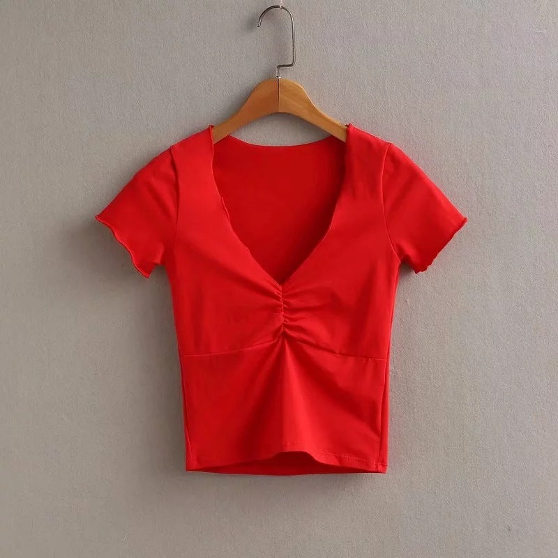 Summer Women Fashion Sexy V-Neck Solid Color Blank T-Shirt