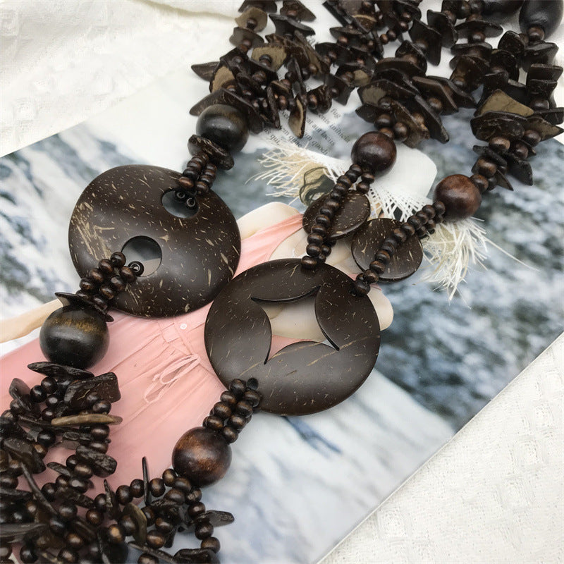 Unisex Bohemian Coir Wood Beaded Lariat Necklace