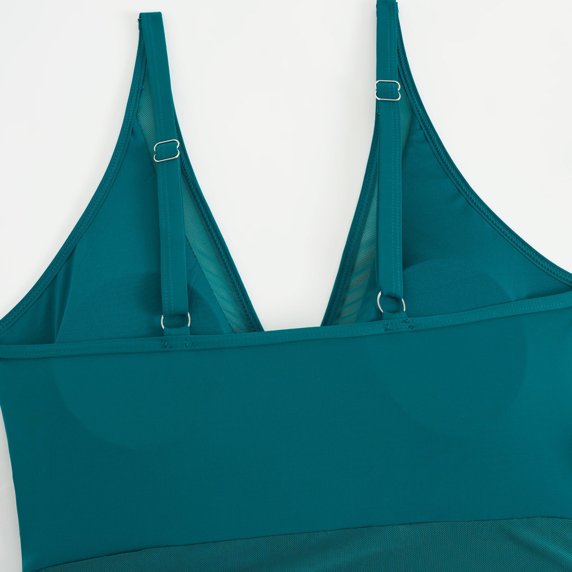 V-Neck Sheer Mesh Dress One-Piece Swimsuit