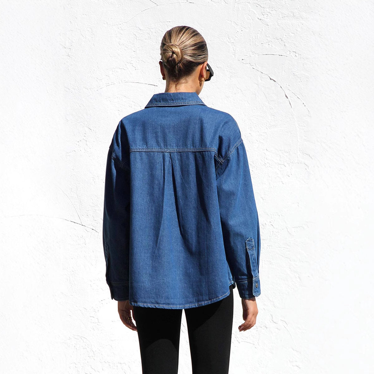 Vintage Polo Collar Long Sleeve Denim Shirt