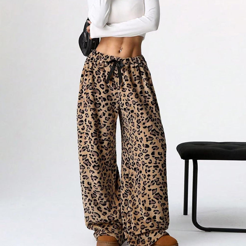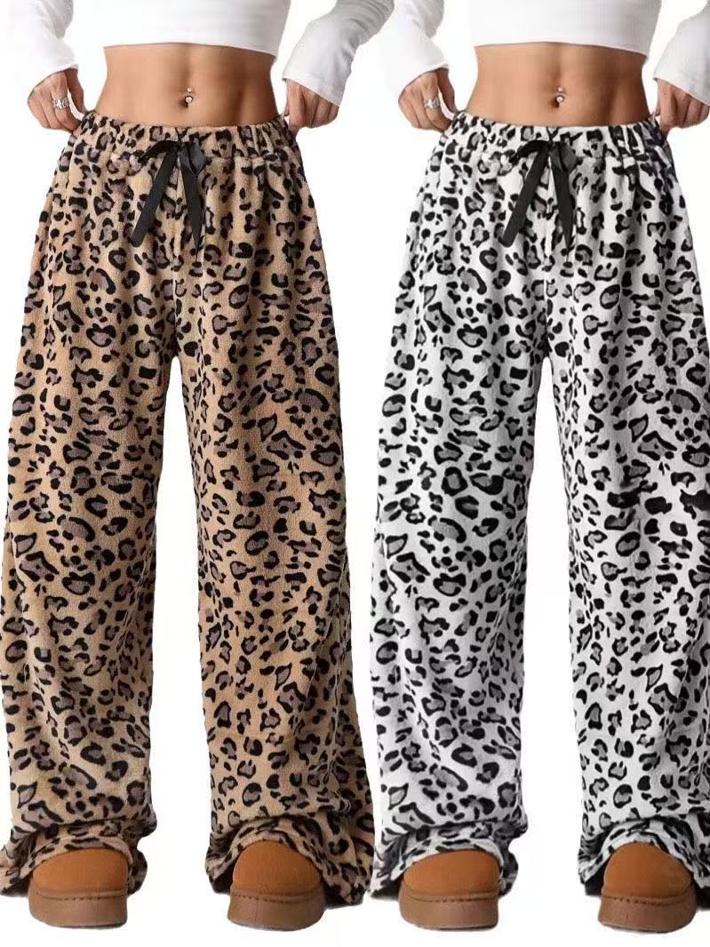 Women Casual Leopard Straight Leg Wide Leg Pants